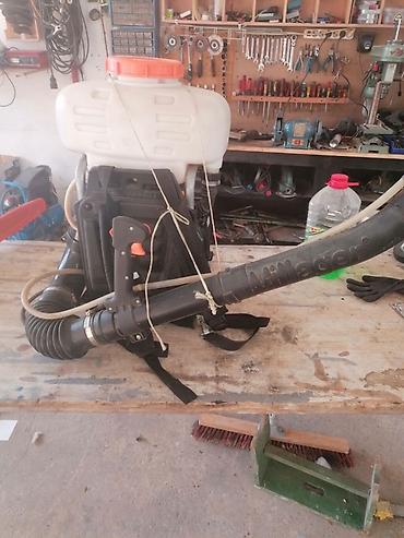 - Prednosti: snažan protok vazduha za doseg krošnje, podešavanje količine sredstva, mobilnost bez potrebe za kablom, lako sipanje i čišćenje rezervoara
