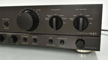 - Selektori ulaza i snimanja: CD, Tuner, Phono, Aux, Tape 1, Tape 2/DAT