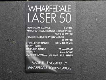 - Originalne metalne prednje ploče sa oznakom “Wharfedale Laser Range”