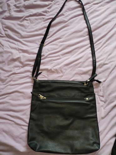 Elegantna ženska torbica sa zlatnim lancem i metalnom kopčom. Model u
