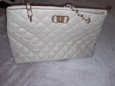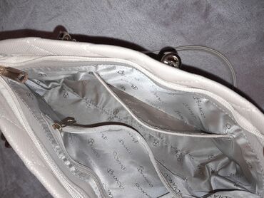 Ženska torba preko ramena, dimenzije 30 x 20 cm. Dizajn u beloj boji sa monogram printom “CK” i centralnim panelom bez šare. Metalni logo “CK” u zlatnoj boji na prednjoj strani. Torba dolazi sa pod...3 500 RSD