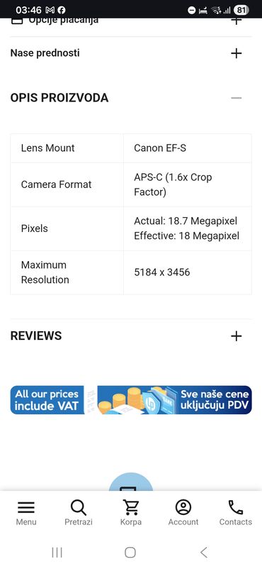 - Pikseli: stvarnih 18.7 MP, efektivnih 18 MP