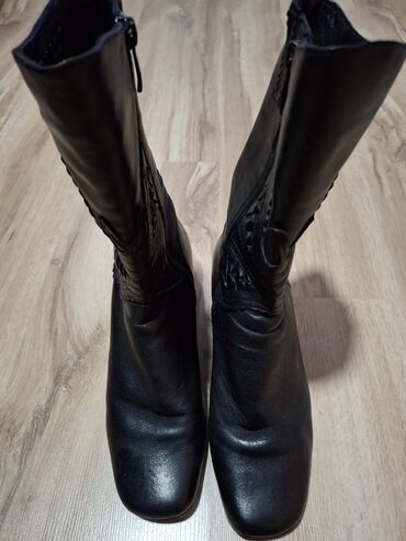 Ambelis - kožne čizme izrađene u Nemačkoj br. 41. Čizme su postavljene tako da su idealne za zimu. Unutrašnje gazište 27cm. Zanimljiv kroj. Boja tamno maslinasto zelena. U odličnom stanju.