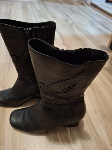 Tamaris kožne čizme nalik kaubojkama. Veličina 41. Unutrašnje gazište 27cm, visina štikle 6.5cm. Čizme imaju mala oštećenja kos rajfišlusa sa unutrašnje strane što se ne vidi spolja. Treba zamenit...
