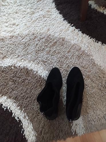Crne ženske gležnjače - Model: klasične gležnjače do iznad članka - Materijal: gornjište nalik brušenoj koži/antilopu; zadnji deo s glatkim kožnim umetkom - Boja: crna - Đon: ravan sa stabilnom ko...