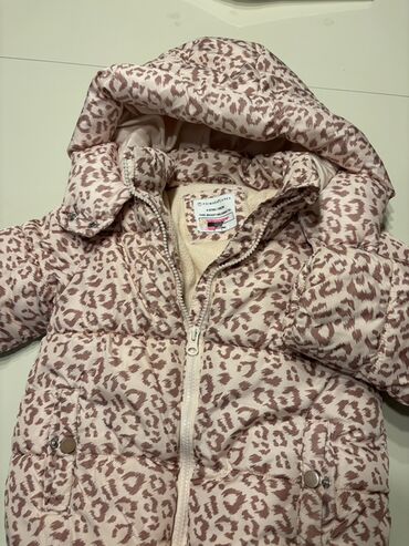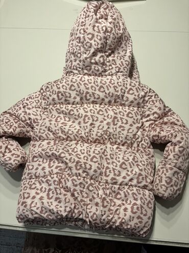 FlisPrimark decija zimska jakna sa kapuljačom, leopard print u puder roze tonovima.
