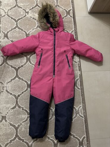 Zimski bebe skafander sa kapuljačom - Boja: roze sa ljubičastim detaljima - Veličina: 16 (oznaka vidljiva na etiketi) - Topla, meka postava od flisa iznutra - Spolja vodootporan/vetrootporan mater...