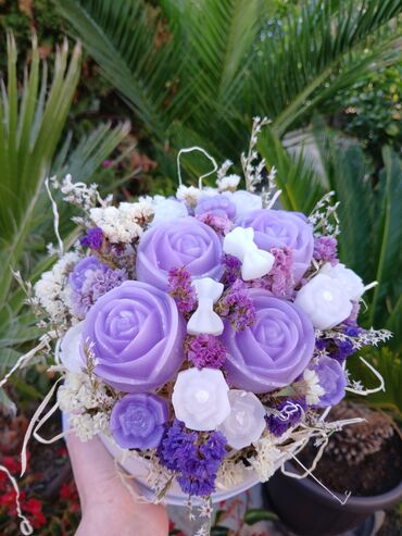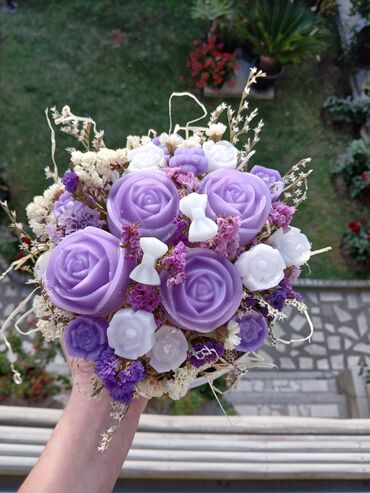 - Raskošan buket ručno livenih sveca u obliku ruža i sitnih cvetova
