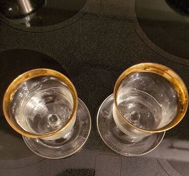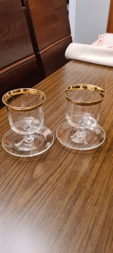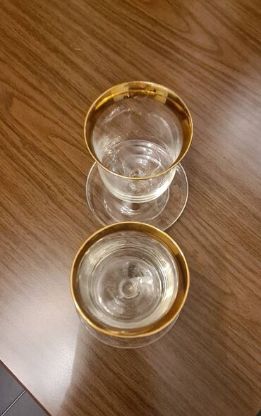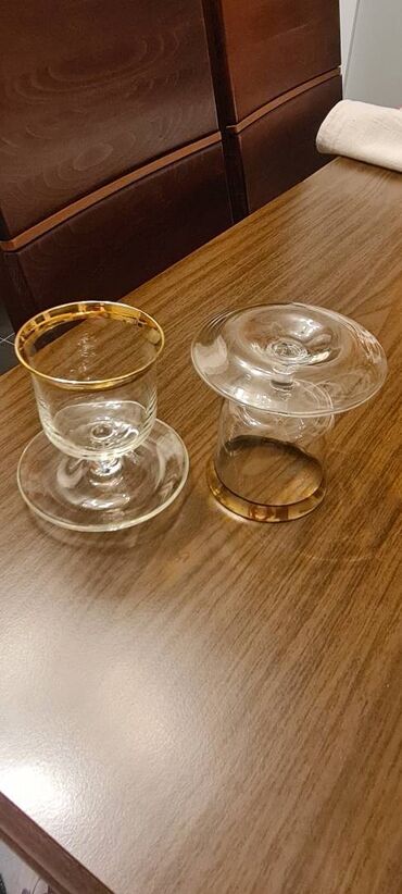 Dve prelepe staklene čaše za sladoled u stilu alt dojč. , tanko staklo, nežno. Na obodu čaša je pozlata.