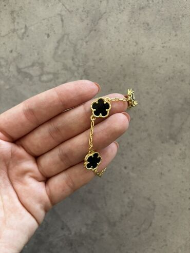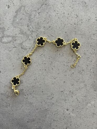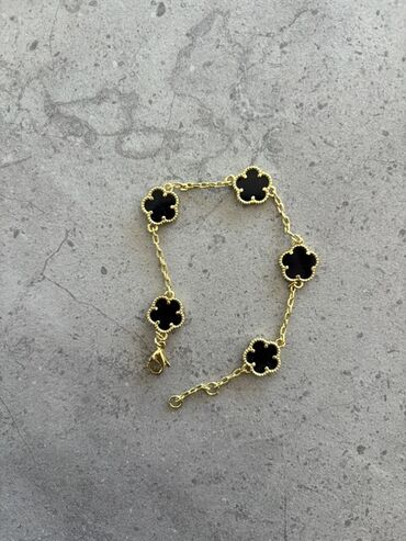 - Materijal: zlatno-tonirana lančana karika sa crnim umecima u obliku deteline
