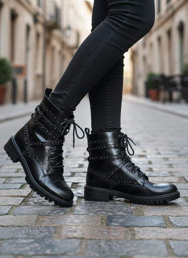 Olang crne ženske čizme za sneg sa debelim đonom i pertlama. Gornjište je izrađeno od kombinacije materijala, što obezbeđuje udobnost i zaštitu u zimskim uslovima. Unutrašnjost je postavljena mekan...Veličina: