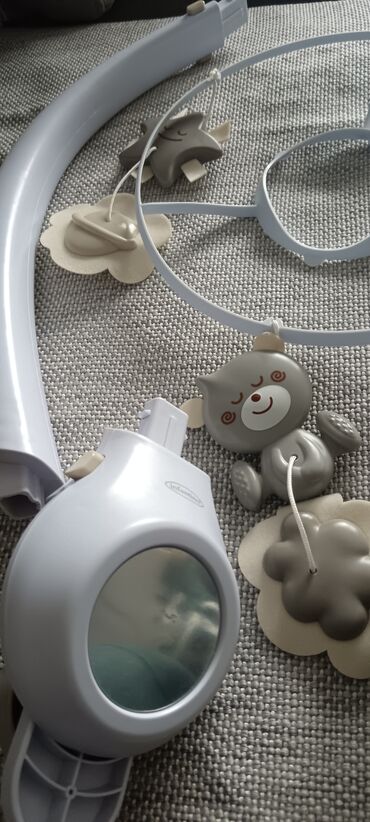 - Multifunkcionalni uređaj za bebine krevetiće: kombinacija muzičke vrteške, projektora i nežnog noćnog svetla.