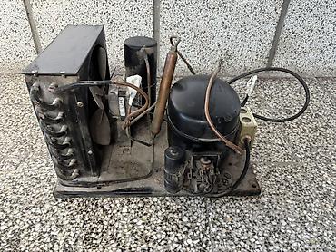 - Kompresorski sklop na zajedničkoj osnovi: hermetički kompresor, kondenzator sa ventilatorom, filter-sušac, sabirnik i priključci za bakarne cevi