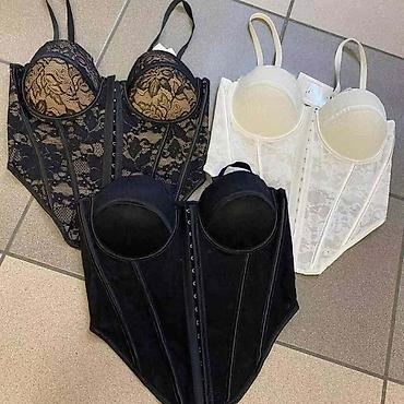- Korzet topovi: model sa formiranim korpama i ojačanjima koji pružaju potporu i naglašavaju struk. Prednje kopčanje kukicama po celoj dužini olakšava oblačenje i fino podešavanje stepena stezanja. Podesive bretele.