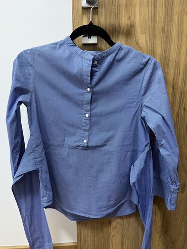 Košulja na pruge, dugih rukava, sa klasičnim kragnom i kopčanjem na dugmad celom dužinom. Svetloplava osnova sa belim vertikalnim prugama. Jedan džep na grudima sa leve strane. Manžetne na rukavima...