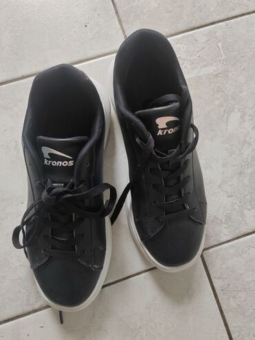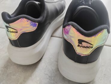 Kronos patike – crne, sa belim debelim đonom i šareno‑reflektujućim detaljem na peti.