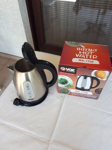 Električni bokal (kuvalo) , firme VOX, zapremine 1.7 litara, 2.200 W. Automatsko isključivanje, napravljen od inoxa. Kao nov. Cena: 1.300 din.