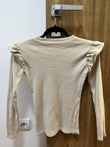 Bež ženska majica dugih rukava - Kroj: ravna silueta, blago opušten fit - Dekolte: okrugli izrez sa ukrasnim čvorom/vezom na leđima i malim otvorom ispod - Rukavi: dugi, klasični - Materijal: meki...