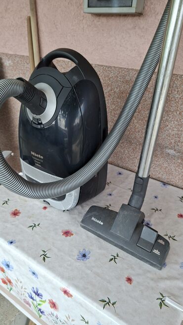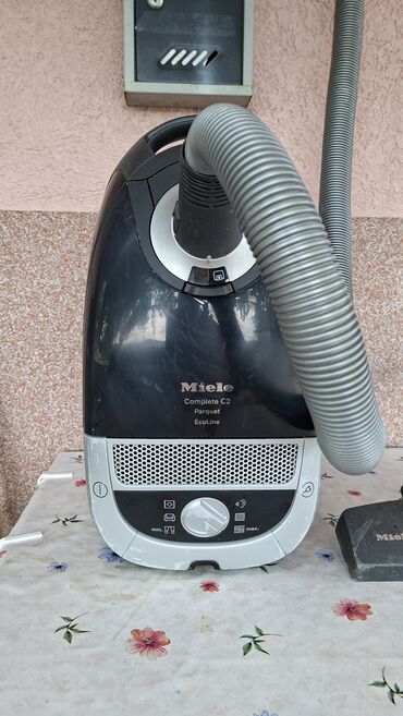 Sve što je prikazano na fotografijama je deo ponude: glavno telo usisivača, teleskopska cev, crevo, kombinovana podna četka i integrisani mali nastavci, kao i filter i kesica postavljeni u aparatu. Model: Miele Complete C2 Parquet EcoLine. Idealno za temeljno čišćenje parketa, pločica i tepiha uz efikasnu filtraciju prašine.