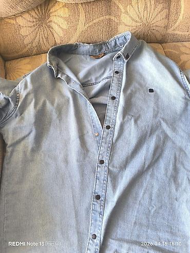 - Džins košulja svetloplave boje: klasičan kroj, kragna, kopčanje na dugmad/drukere duž cele dužine, diskretan štep i mali izvezeni detalj na grudima. Prijatna, srednje debljine teksas tkanina pogodna za nošenje preko majice ili samostalno.