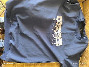 - Dukserica tamnoplave boje (HUGO BOSS): okrugli izrez, elastične ranfle na rukavima i struku, veliki BOSS HUGO BOSS print na sredini grudi sa efektom pukotina. Mek pamuk sa glatkom spoljašnjom stranom.