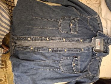 Teget-svetloplava teksas košulja/lagana jakna od tankog denima. Na