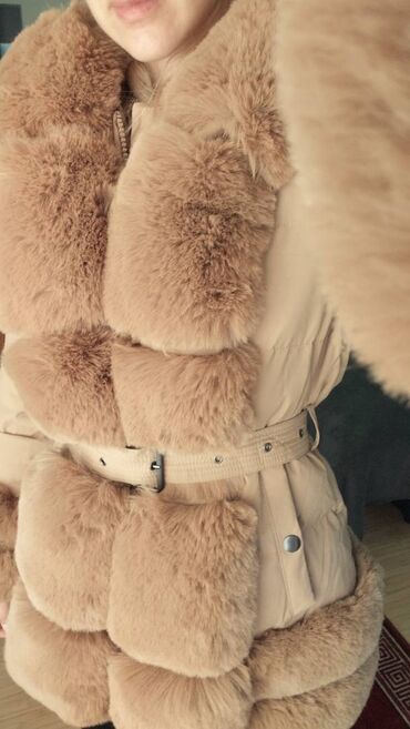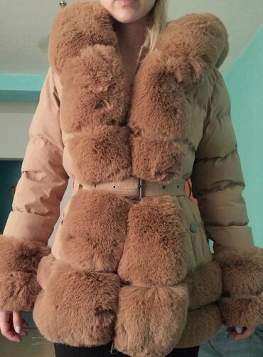 Oker jakna sa puno krzna, potpuno nova, dobijena na poklon, nijednom nosena. Krzno se moze skinuti.