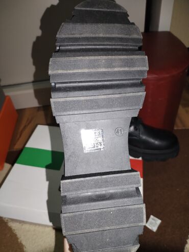 Postavljene čizme gležnjače br. 41. Čizme su izrađene od veštačkog materijala sa đonom koji se ne kliza. Unutrašnje gazište je 27cm, visina potpetice je 5cm. Nošene. Čizme imaju mala oštećenja u ...