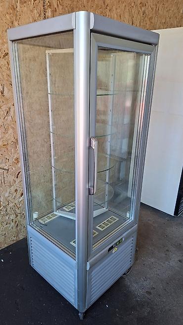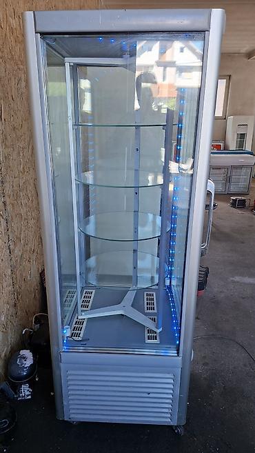 - Tip: vertikalna staklena rashladna vitrina za izlaganje kolača, peciva, pića i delikatesa