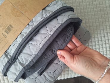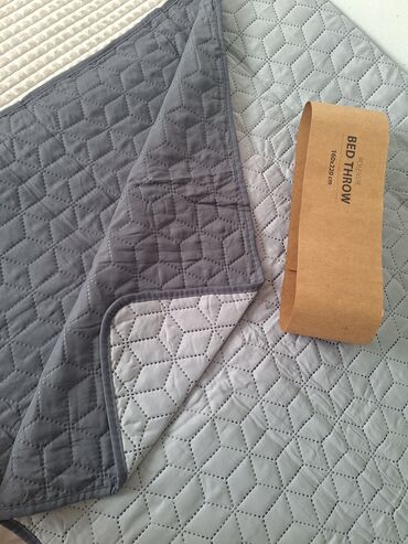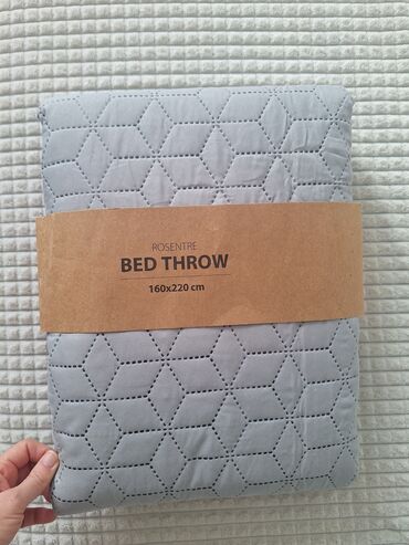 - Dekorativni prekrivač/bed throw u sivoj boji sa sitnim, geometrijskim prošivom.