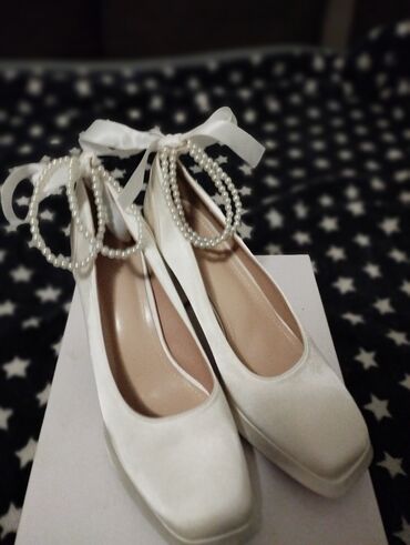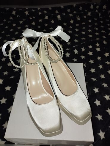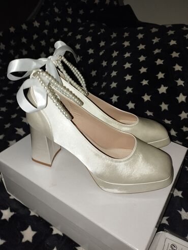 Elegantne crne salonke/štikle sa vezivanjem oko zgloba i ukrasnim bisernim narukvicama na risu. - Materijal: meka eko antilop tkanina spolja, glatka bež postava. - Oblik: špicasti vrh, zatvoren...