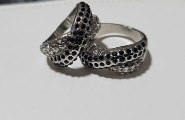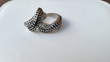 Podesivi prsten sa isprepletenim dizajnom i kristalima. Prsten je svestran i prilagodljiv, što ga čini pogodnim za različite veličine prstiju. Njegov ukršteni dizajn ukrašen je nizom sjajnih krista...