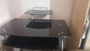 - Povišena polica za monitor ili dodatnu opremu, oslonjena na metalne nogare.