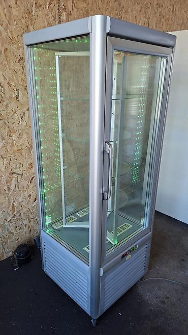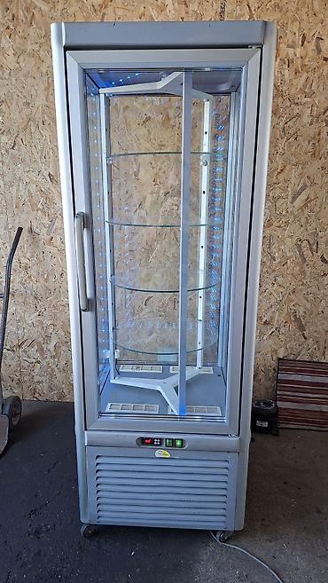 Dimenzije nisu naznačene na pločici; vidljivo je kompaktno, uspravno kućište pogodno za poslastičarnice, pekare, kafiće i prodavnice za prezentaciju rashlađenih proizvoda.