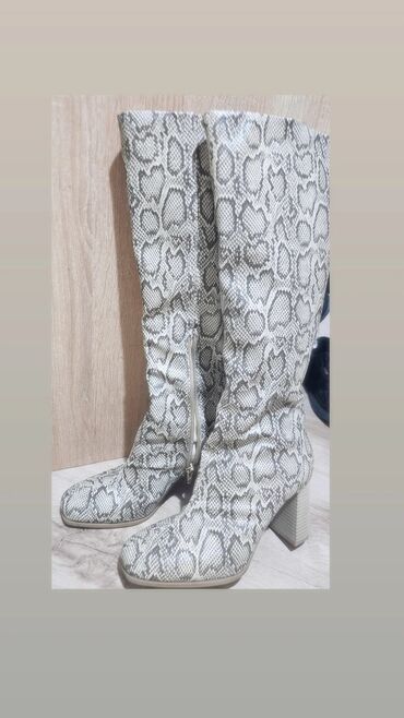 NovoŽenske čizme do kolena sa printom zmijske kože. BERSHKA