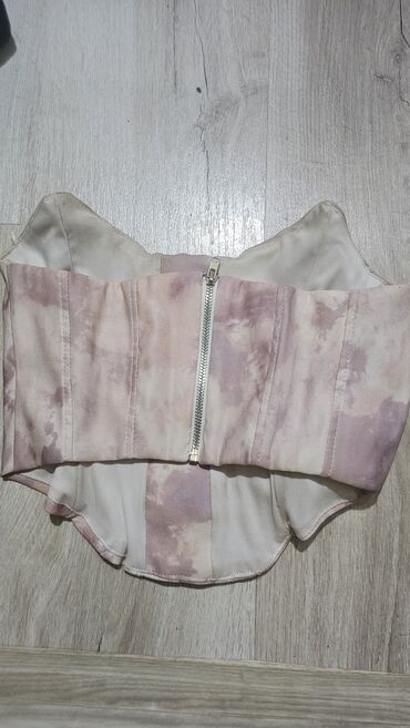 Korzet top bez bretela u pastelno ružičasto-lila tie-dye šari.