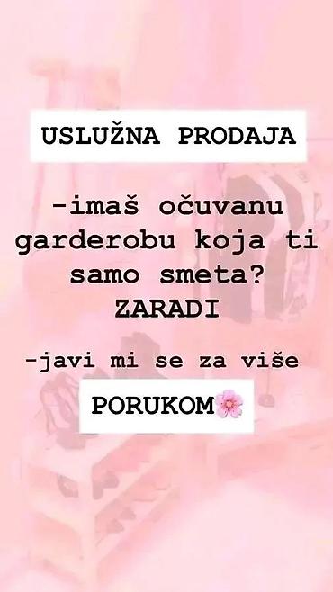 Uslužna prodaja garderobe - Usluga posredovanja u prodaji vaše očuvane odeće i modnih dodataka. - Idealno ako imate komade koji vam stoje u ormanu i želite da ih unovčite. - Organizujem objave, pr...