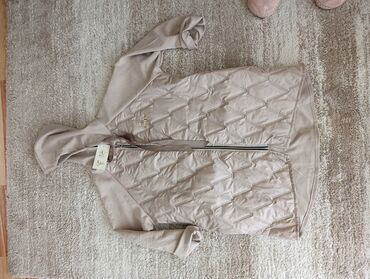 - Materijal: kombinacija mekog dukser materijala (rukavi, leđa i kapuljača) i prošivenog, lagano postavljenog panela napred