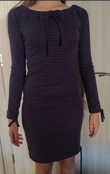Uska rebrasta haljina sa prugama, tamnoljubičasto-crna. Uplata pa slanje.