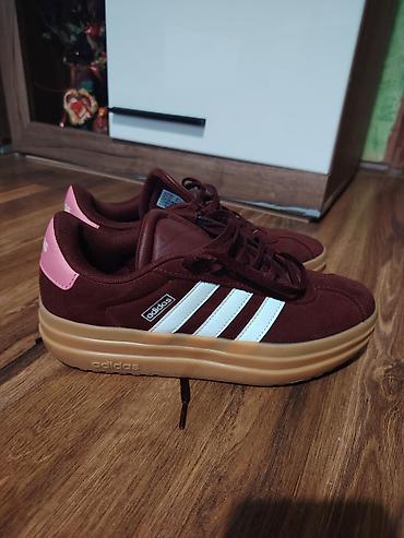 Adidas patike – bordo/braon sa belim prugama i ružičnim detaljem -