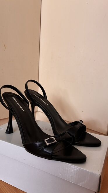 Potpuno nove, nijad nosene Nine West New York ženske sandale na visoku štiklu - Model: elegantne sandale sa tankim kaišem oko zgloba i diskretnim visećim priveskom u zlatnom tonu - Boja: crna, la...