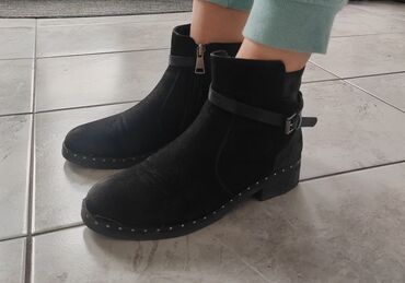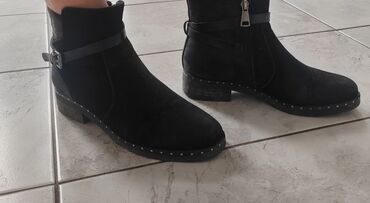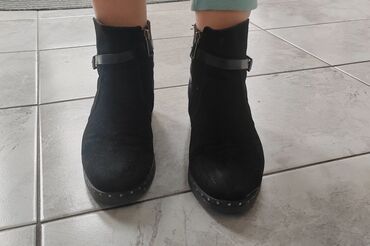 Crne zimske čizmice/ankle boots sa toplim krznastim postavom. - Model: niske čizme do članka, za svakodnevno nošenje - Boja: crna spolja, krem/bež krznena postava iznutra - Materijal spolja: mekan...20 000 RSD
