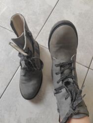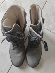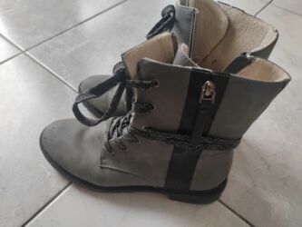 - Materijal: glatka siva eko-koža/nubuk izgled, unutrašnjost sa mekanom, toplom krznastom postavom u svetloj boji.