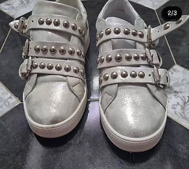 STEFANO kožne patike, nove, 37br. Plaćene mnogooo vise. Srebrne ženske patike sa nitnama i kaiševima.