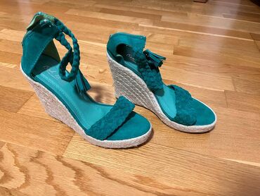 O trošku kupcaPokupiti na licu mestaŽenske letnje sandale na punu petu (espadrile) u tirkiznoj boji.