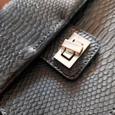 - Materijal: crna eko-koža sa izraženom zmijskom teksturom, sjajna završnica