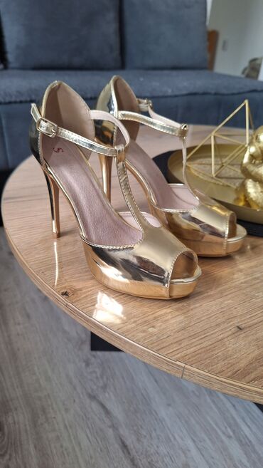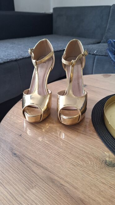Potpuno nove sandale, broj 37. Veštački materijal. Visina štikle 8 cm.