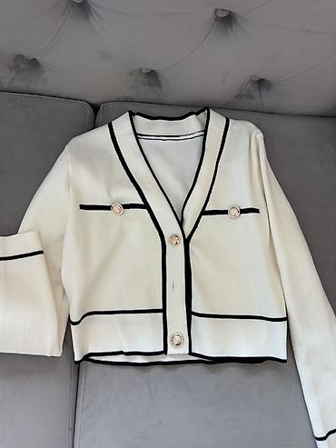 Ženski džemper sa bisernim aplikacijama oko okruglog izreza. S, M, L