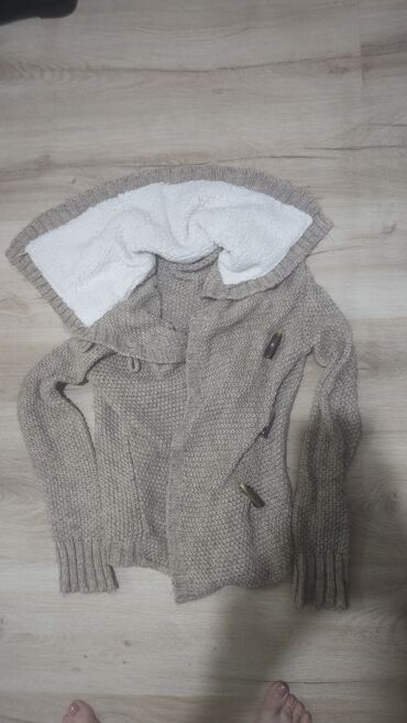 JednobojniPleteni kardigan sa kapuljačom i “šerpom”
