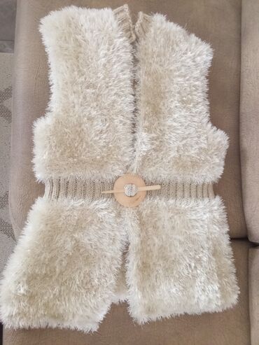 Plišani prsluk bez rukava, krem/bež bojeručni rad univerzalni